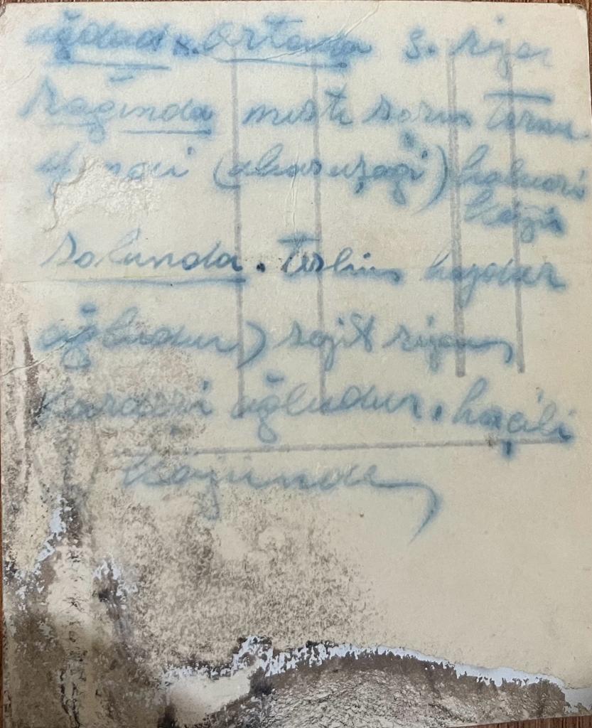 Kasım Demiralp tarafından 12 Eylül 1980 darbesi sırasında toprağa gömülen ve 1984’te yeniden çıkarılan bir fotoğrafın arka yüzü. Arşivden