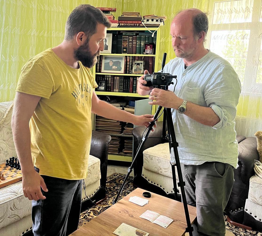 Arşivi dijital ortama aktarma çalışmalarını başlatmak için fotoğraf ekipmanlarını kurduk ve teknik kurulumları tamamladık. Bu süreçte, dedesinin arşivi üzerine titizlikle çalışan torunu Dara ve arkadaşı Ahmet ile kayıt altına aldığımız söyleşiler yaptık.
