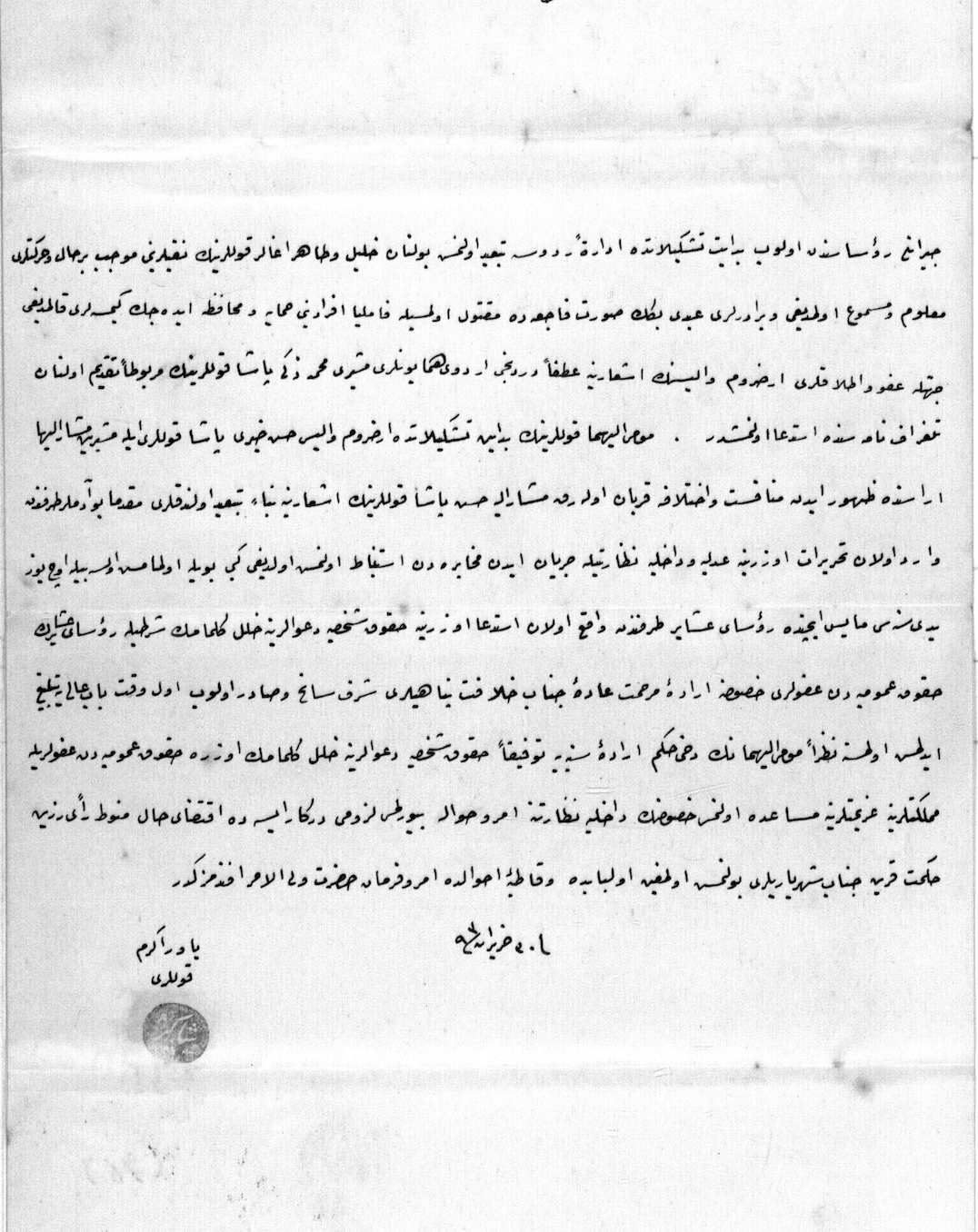 Kopiyek telgrafeke ku ji serokatiya Erzîromê re hatiye rêkirin, hatiye şandine ku ji aliyê Mehmed Vefki û Yusuf ve hatiye îmzekirin û tê de derbarê reftar û helwesta nebaş a peyamhilgirê berê yê Bedlîsê di meseleya girtina zarokên Xeto yên ji eşîra Cibirî de şirove û daxwaz hene. Berê derbarê vê mijarê de hin name bi Ofîsa Waliyê Erzîromê re hatibûn şandin û wergirtin. Tê fêmkirin ku ev mesele di dema walîtîya Arif Paşa yê Bedlîsê de qewimiye. Ji ber vê yekê, ji bo wergirtina agahiyan li ser meseleyê, hin pirs ji Arif Paşa hatine pirsîn. Arif Paşa agahiyên pêwendîdar şandine. Li ser bingeha van agahiyan, nameyên berê yên heyî û naveroka telegrafa jorîn, ji kerema xwe agahî bidin ka derbarê vê meseleyê de divê çi tedbîr were girtin.